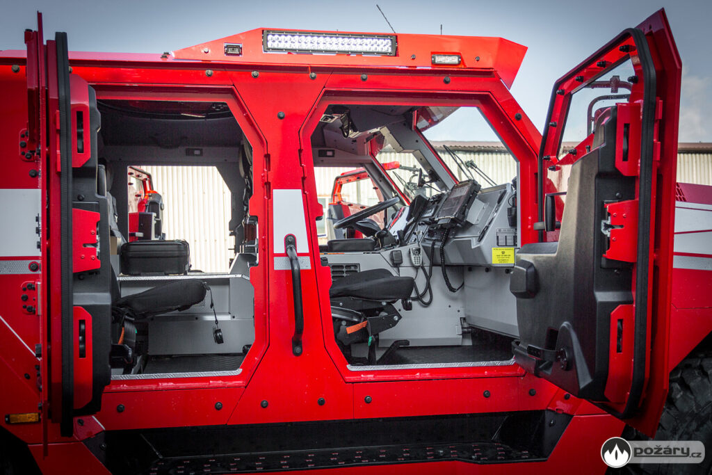 - Fight fires from inside the armored cabin & while on the move